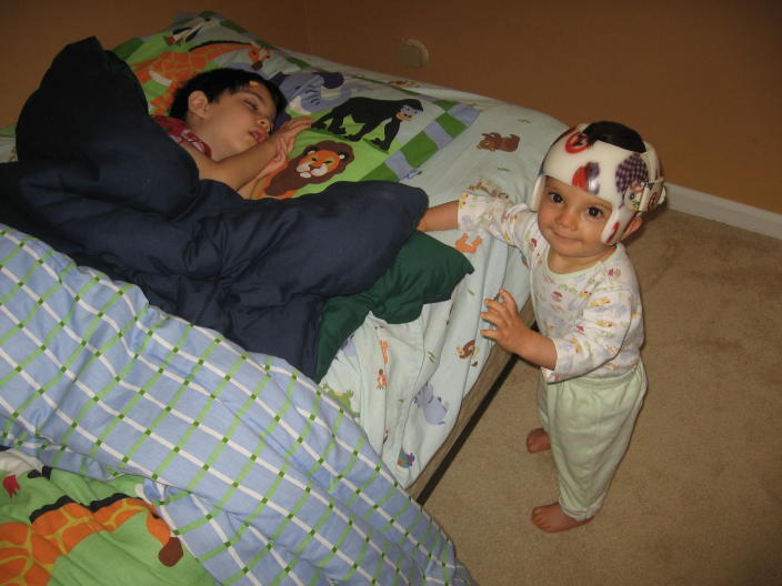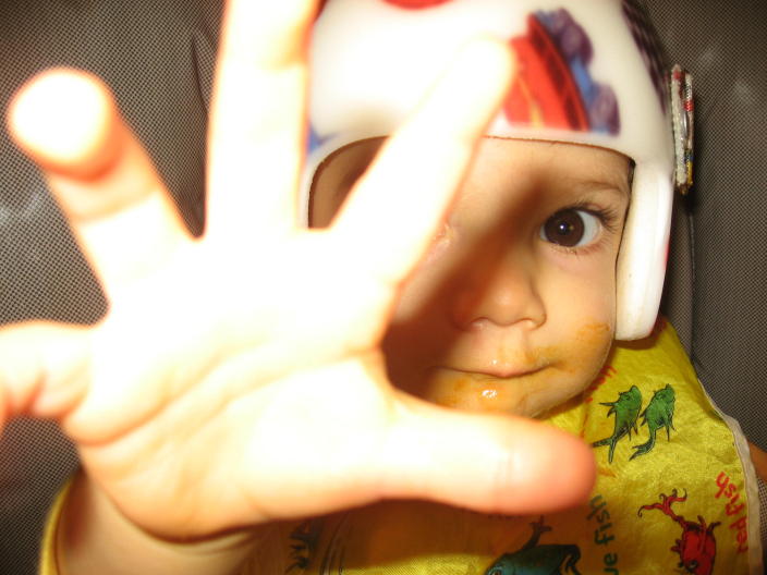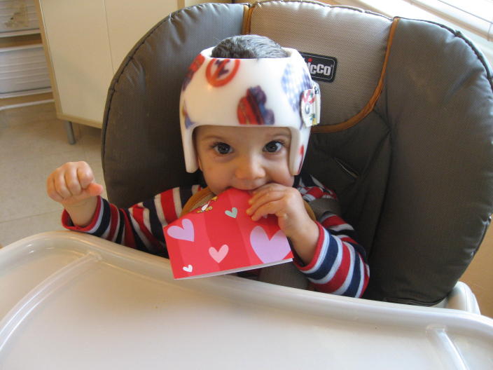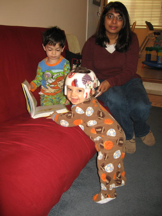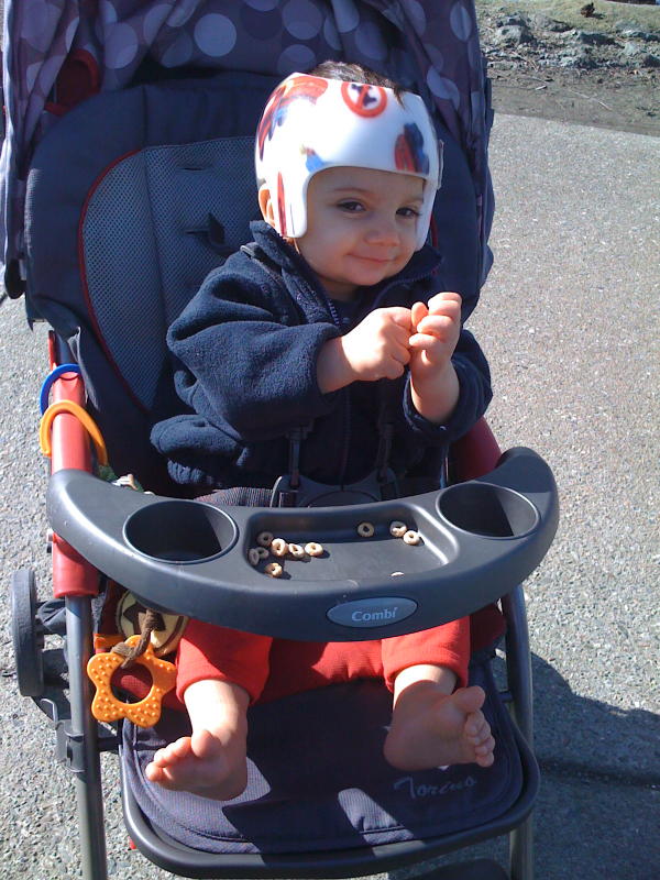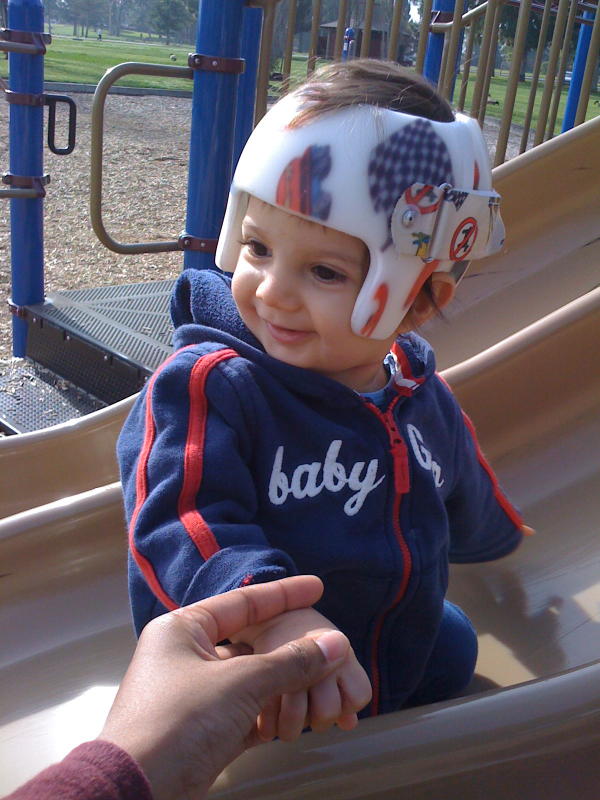 Studying the abacus at the helmet appointment.