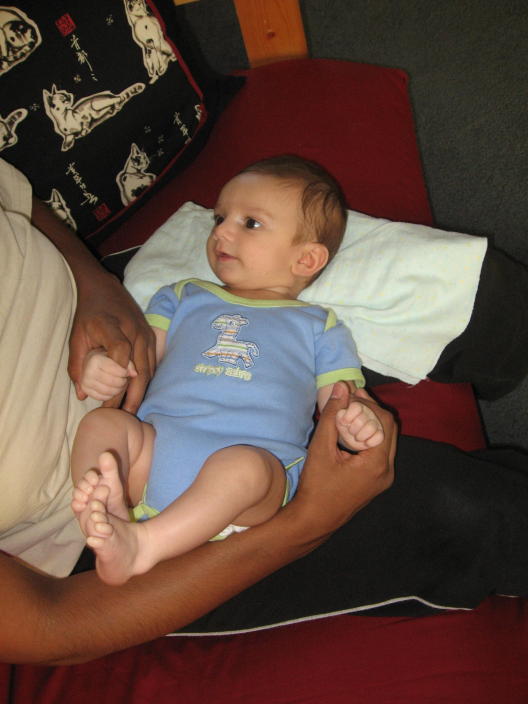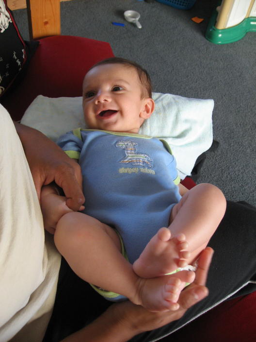 Having a good laugh on Mommy's lap