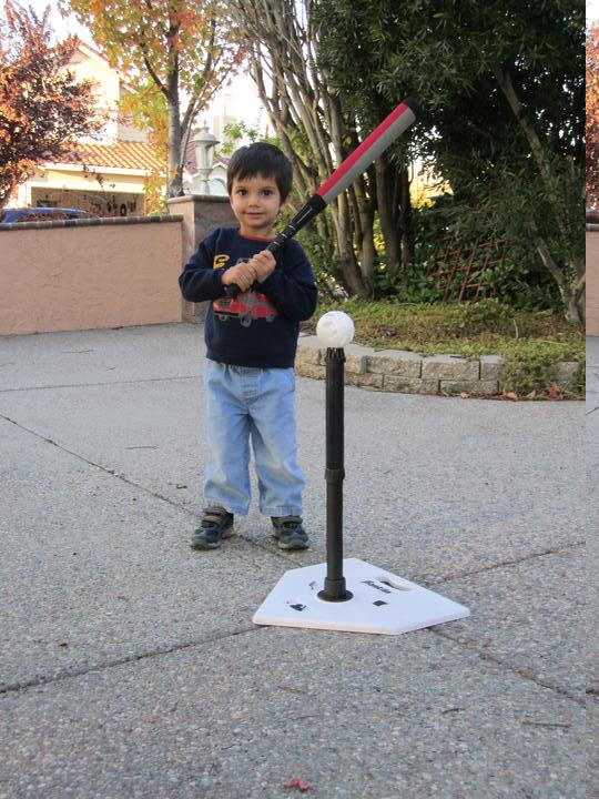 Getting ready to practise tee ball