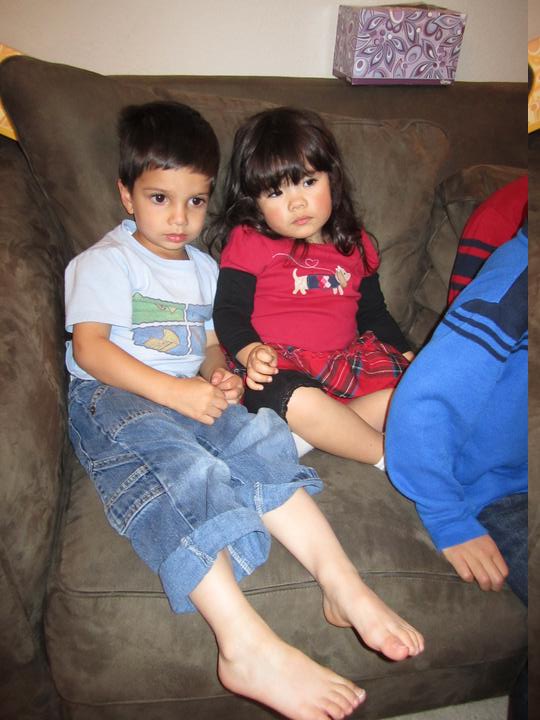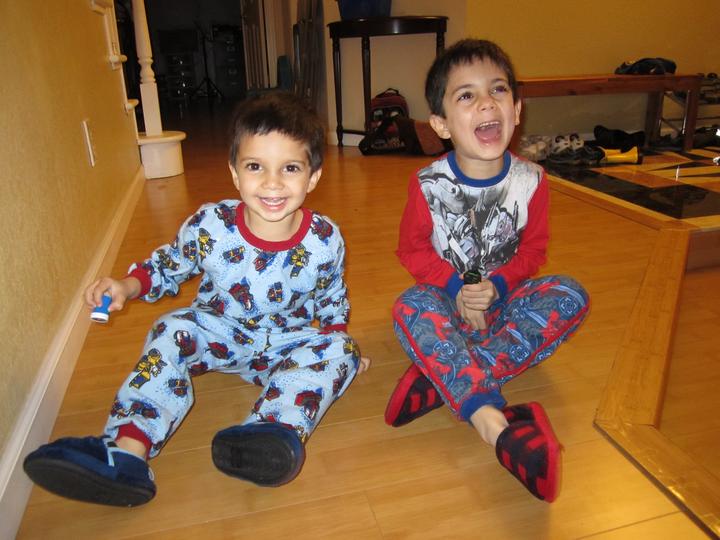 Sharing a laugh with big brother Mason