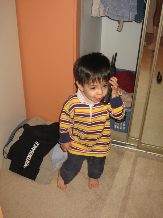 Lachlan shows Mason how to make a phone call.