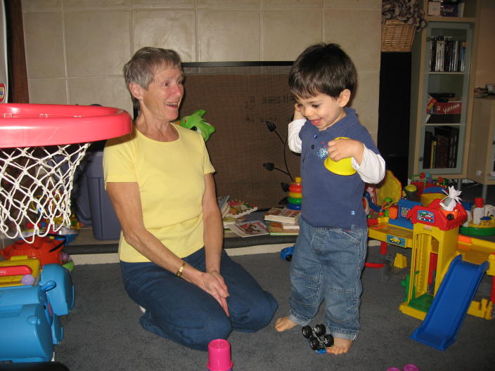 Mason and Grandma D share a joke.