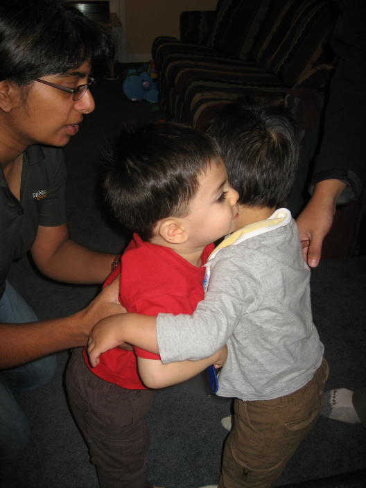 Elijah giving Mason a hug