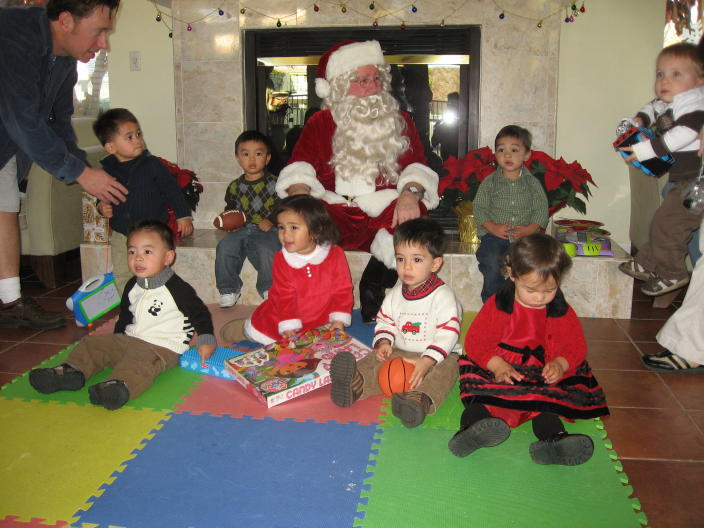 With Santa at the Mom's group's Xmas party