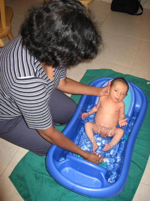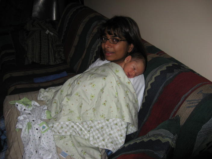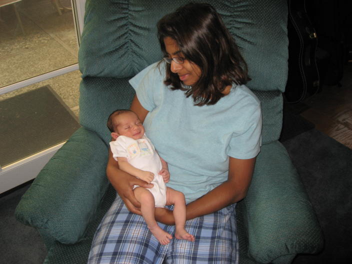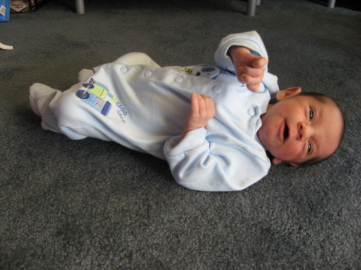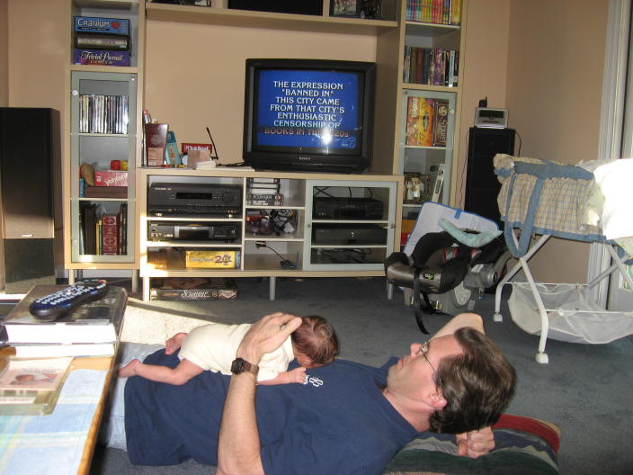 Dad gives Mason some 'tummy time' while he practices at Jeopardy!