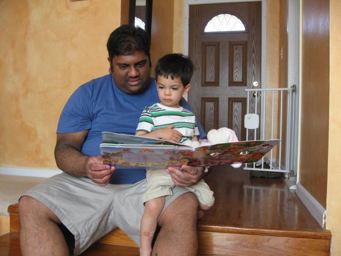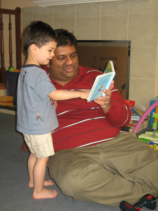 Enjoying a book with Uncle Rob