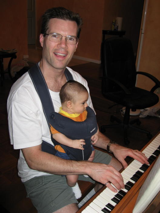 Mason's first piano lesson. He's so intent on reading the music, he won't