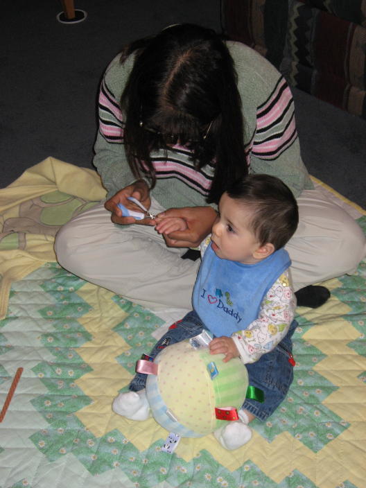 Mommy uses the 'TV trick' to distract Mason while she clips his fingernails