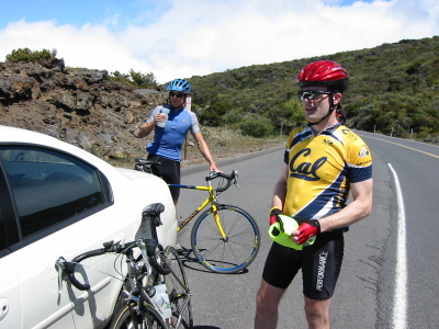 The mist didn't last long, though, and Shirley decided to enter the park and continue on up, so we finally met up just a little farther on, at around 1pm. I didn't need a rest, but I decided to pull over and put on a jacket; even though it was still very nice, the temperature was definitely dropping as we were ascending.