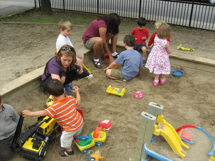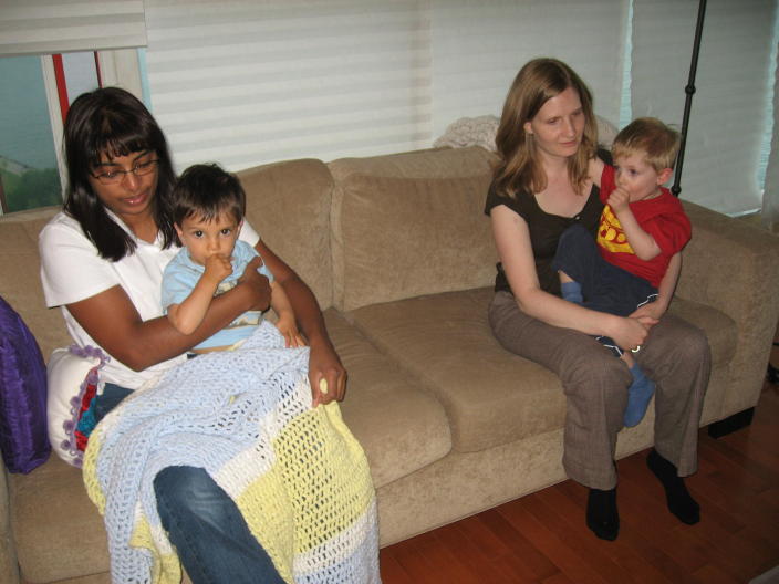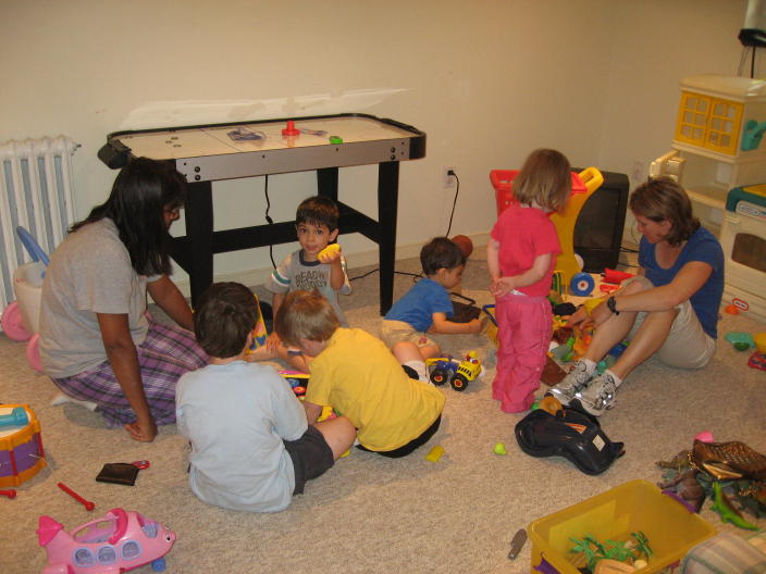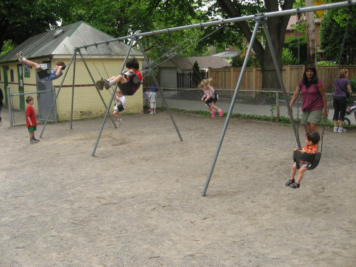 The Kellys and the Davises rule the swings (look closely, they're all there)